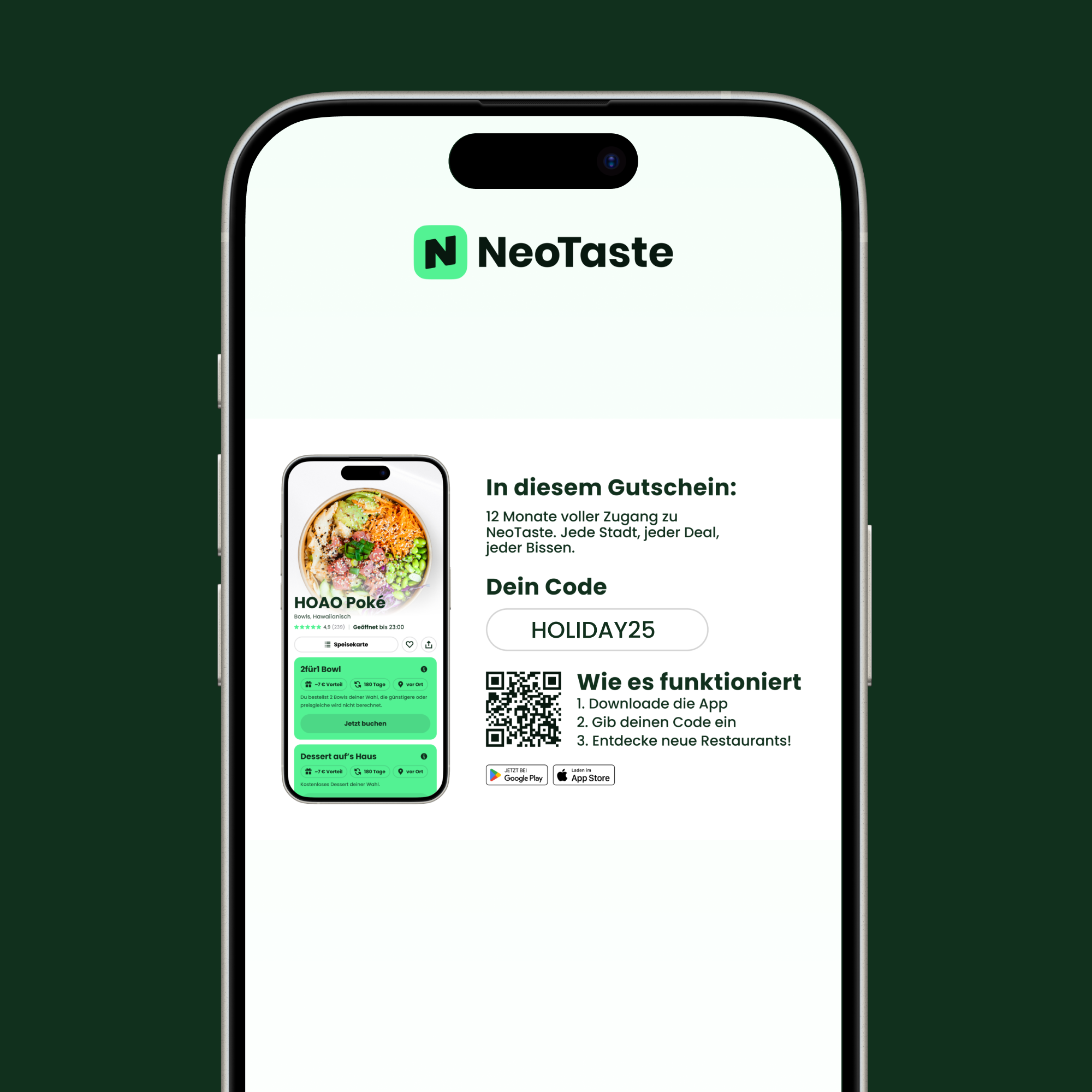 With NeoTaste vouchers, you give access to deals at over 7,000 selected restaurants, bars, and cafes. Available as a box or for printing.
